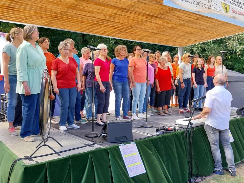 … bei dieser Feier durfte unser Chor nicht fehlen. Gerne haben wir bei Kaiserwetter an der Burg Uda sommerliche Lieder gesungen und uns sehr über den Applaus des Publikums gefreut.
